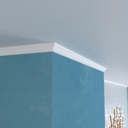 Утончённый молдинг для интерьера в классическом стиле. Сохранит свою первоначальную белизну на протяжении всего срока использования.